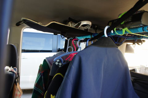 室内の天井に、純正オプションのクロスバーが付いているので、