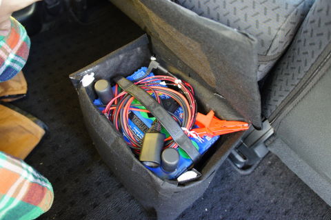 断熱材で囲って、シガー電源も一緒に収納。