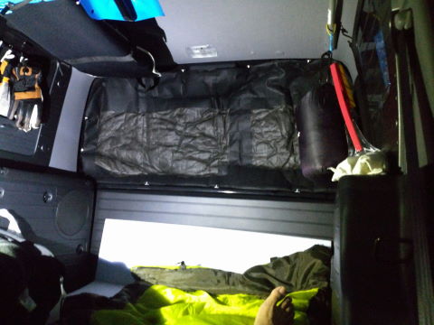 フロアーには、キャンプで使っている折り畳み銀マットがほぼピッタリ幅。