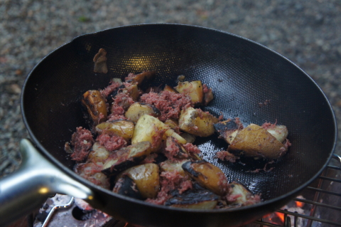 オリーブオイル、にんにく、コンビーフとジャガイモを炒めてウマウマ!